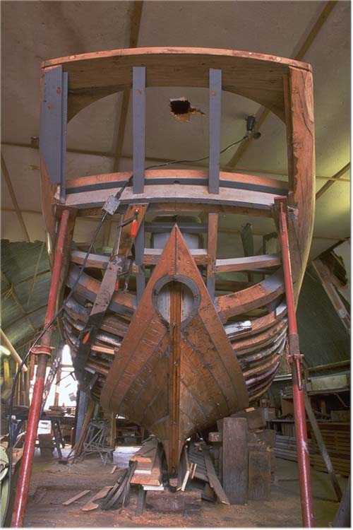 Note the vertical staving of the helm port for the rudder stock.
