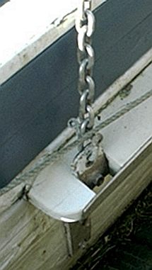 shows the reason for fitting channels. The steel rubbing strip on the channel takes the knocks coming alongside. The top hole in the chain plate is 11/4" / 31mm dia. and allows the head of a big shackle to pass through. This is important. Too often the hole is sized for the pin of the shackle and the head will not pass through the chain or the chain plate and a smaller shackle than desired is used - nearly always the weak link in the shroud. |