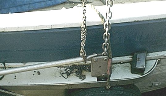 by a line passing under the bulwark strake to a cleat.