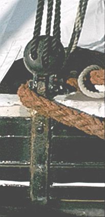 The wrought iron chain plate is carried up the side of the bulwark strakes